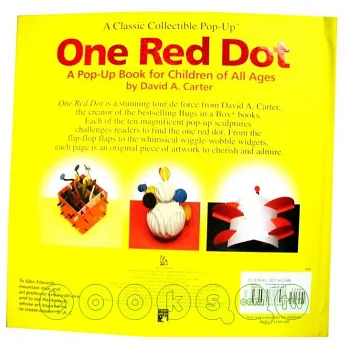 Each of the ten magnificent pop-up sculptures challenges readers to find the one red dot. From the flip-flop flaps to the whimsical wiggle-wobble widgets, each page is an original piece of artwork to cherish and admire.