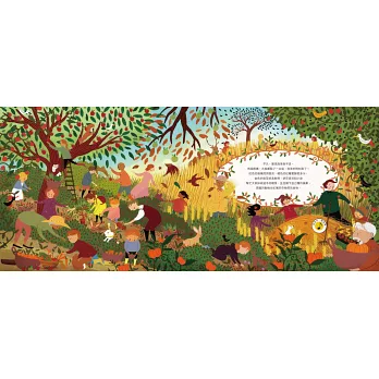 等到暴風雨漸漸平息,大家忙著採收秋天豐美的果實,準備過冬。