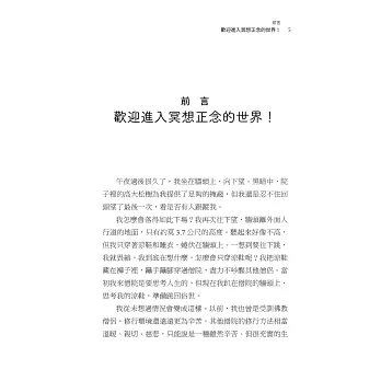「關於冥想主題的書,你只需要這一本就夠了。帕帝康為這項常被認為相當深奧的修練揭開神祕面紗,把它帶進你的客廳、你的辦公室及你的心裡。」――派翠西亞.萊恩.麥德森(Patricia Ryan Madson),《成功創意,不請自來》作者