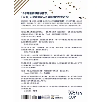 從2022年世界盃舉辦國的海灣國度卡達,到常勝之軍德國,甚至是球王之爭的阿根廷與葡萄牙、非洲雄獅喀麥隆等,在這三十二隊薈萃、強者雲集的競技場中,我們將不只能看見他們華麗的球技與天衣無縫的團隊默契,更能看到隱藏在他們球衣之下,那更具血肉與歷史的時間重量。