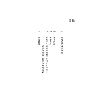 至今,許多人對奶奶的想像與投射,都還是從犧牲、受害的扁平結構出發,本書卻提供了足夠長的生命歷程,讓讀者體會到女人在不同情境中的能動性。──許菁芳