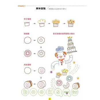 繪本插畫家吉娜兒教你用鋼珠筆畫畫,書中以「繪本式」的教學方式讓你找回畫畫的樂趣!內容包含開心動物園、美味食物、環遊世界、歡樂派對、字體設計、畫畫日記等,簡單清楚的Step by Step步驟教學,免除你學習的煩惱。書中最後還貼心收錄俏皮可愛的圖案,讓你學習參考使用。