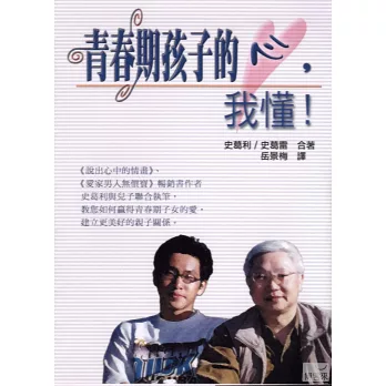《說出心中情畫》、《愛家男人無價寶》暢銷書作者史葛利,根據自身的經驗和多年來的研究,建議家有青少年的父母要維持寬容的心態、永遠敞開溝通的大門,讓子女在彼此尊重的環境中成長,青春期孩子的心,就不再那麼難以捉摸。作者也針對如何降低衝突、溝通、解決衝突,提出了最實用的策略。
