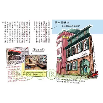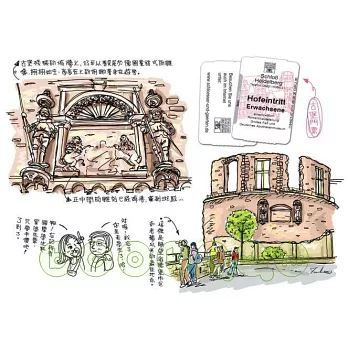 記錄感動旅程的,不只是文字,還有幾乎等量的相片與彩繪。所有親自拍攝或畫下的影像,不論高大的城堡,可愛逗趣的路旁雕像,或桌上好吃的食物,都是作者每個當下的心靈悸動記錄,真誠可愛的情感投射。