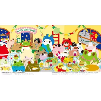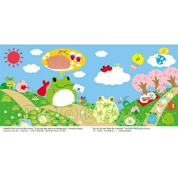 「元祖蛙」打算在生日當天,邀請所有的朋友來參加他的生日派對,於是他打扮成「旅行蛙」出發了!一路上經過春之原野、青蛙農場、學校、超級市場、沙灘、溫泉……,他能不能成功邀請到所有的好朋友呢?