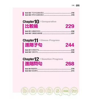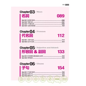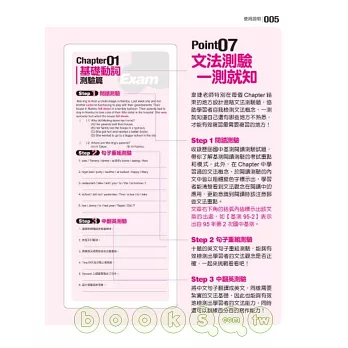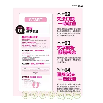 文字剖析關鍵概念:針對文法概念和觀念的部份附上最精確的觀念剖析,利用文字全面性的邏輯,就能建立起重要文法觀念。