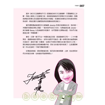 韋婕老師也是暢銷書作者,著有多本賣翻天的好書,包括《背單字,原來如此》、《背片語,原來如此》、《7000單字,看這本就夠了》、《NEW TOEIC單字看這本就夠了》、《一定能說的英語會話》,最新作品為《英文文法簡單到不行》。