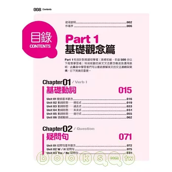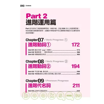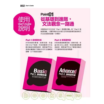.以多益550分作為分水嶺將全書分為「基礎觀念篇」與「進階運用篇」,「客製化」的學習概念讓各種程度都絕對適用!