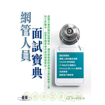 透過大量的面試試題解析,讓您輕鬆面對各種企業對網管人員的工作要求,從眾多競爭者中成功脫穎而出!