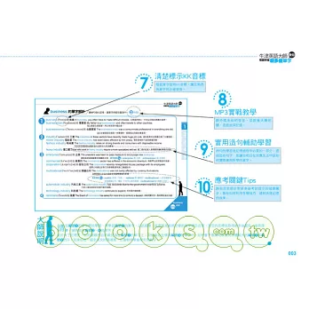 10. 應考關鍵Tips-路易思老師針對新多益考試提示的破題撇步,教你如何利用各種技巧,達到快速記憶的效果。