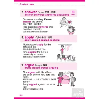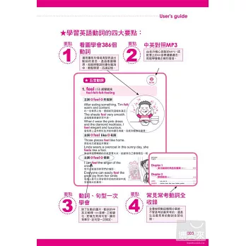 運用畫面及情境清楚表達出動詞的意思,透過看圖聯想,就能將動詞刻畫在腦海中,輕鬆學習、迅速記憶。