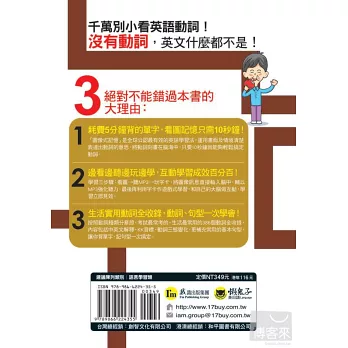 《圖解英語動詞大全》運用「情境+圖像式記憶法」,完全圖解390個基本動詞,並獨家附贈「動詞圖解字卡」+「單字朗讀MP3」,將是你的第一本、也是最後一本的英語動詞工具書。