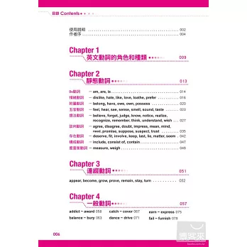 全書按照動詞種類分章節,不管是考試最常考的,還是生活最常用的動詞全部收錄。