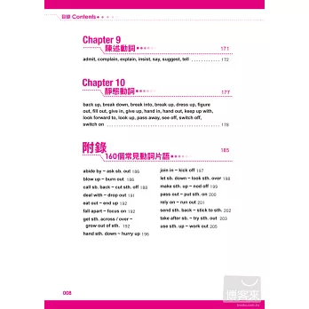 按照動詞種類分章節,考試最常考的、生活最常用的386個動詞全收錄,內容包括中英文解釋、KK音標、動詞三態變化,更補充常用的基本句型,讓你背單字、記句型一次搞定。