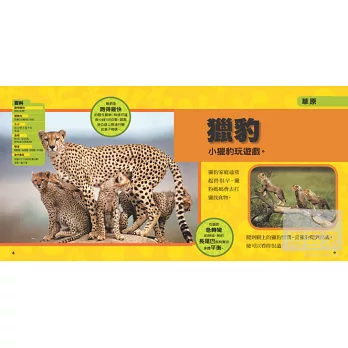 30種生活在不同棲地的動物,各自有什麼樣的特徵、專長以及生活故事?作者凱薩琳.休斯分別用草原、海洋、沙漠、森林、極地做區分,介紹30種各有特色的動物,搭配國家地理精彩的動物圖片,每篇還設計了互動問答題增加閱讀趣味,讓孩子輕鬆認識世界的動物!