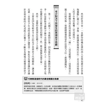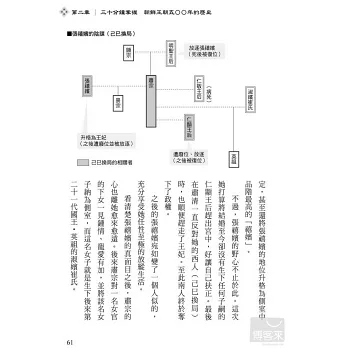 隨著《李(示示)》、《同伊》、《明成皇后》等人氣韓國古裝劇的強力放送,許多人開始對朝鮮王朝的歷史感到興趣,但令人意外的是,這個持續繁榮了500年的王朝歷史,大家對它卻所知甚少。因此本書便以多齣人氣韓國古裝劇的經典場面和時代背景為切入點,將朝鮮王朝的歷史做一完整的整理。介紹朝鮮王朝從李成桂開國到滅亡之間的宮廷權力鬥爭、政治權謀、朝鮮與其他列強的關係等等,並搭配各式照片、地圖、表格、家系圖輔助解說,可說是瞭解朝鮮王朝歷史的最佳入門書。此外,書中還介紹了朝鮮王朝王妃的品階、兩班貴族及女官們的階級劃分、皇帝和王妃服裝上的規定、宮廷的飲食文化……希望各位在看韓劇時能對歷史背景有更進一步的瞭解,進而享受觀賞的樂趣。