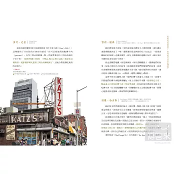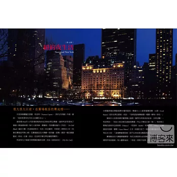 《x戰警》金鋼狼休.傑克曼(澳洲人)、《慾望城市》女主角莎拉.潔西卡派克(在俄亥俄州長大)、名廚安東尼.波登(道地的紐約客)、導演伍迪.艾倫(從幫作家捉刀寫笑話起家)、地產大亨唐納.川普(瀕臨破產又東山再起)、紐約市長彭博(來自麻省)……以上這些人都會在書裡現身,告訴你:為什麼這輩子一定要來一次紐約