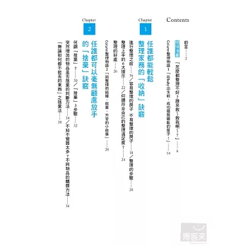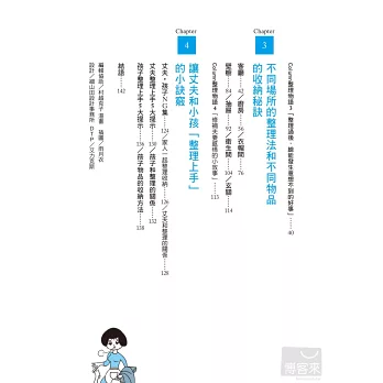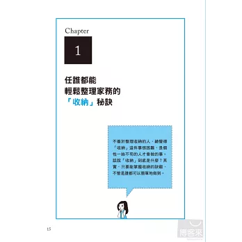 家裡總是亂糟糟的您,是不是總是遇到上述問題、萬年卡關呢?本書介紹了許多簡單又好用的整理收納小撇步,只要依樣畫葫蘆,便能改變讓您頭疼已久的髒亂環境!另外,除了自己要學會該如何整理收納之外,也要教導老公和小孩管理好他們自己的領域,才能事半功倍喔!