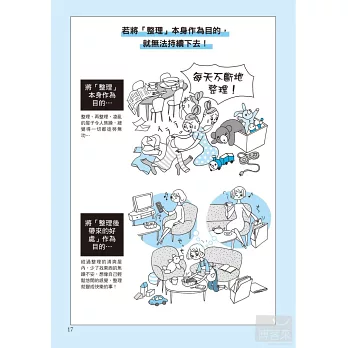 本書收錄客廳、廚房、臥室、抽屜、玄關等,各處的整理法。只要擁有這一本,就能將家中的每個角落都收拾的乾乾淨淨。容易失去耐心、越整理越煩躁的您也不用擔心!以圖文漫畫的表現方式,定能讓您像閱讀漫畫一樣輕鬆並繼續執行。