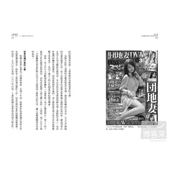 本書以日本各時期的社會為背景,逐步帶領我們走過情色業的人妻角色發展,作者更親自訪談多位偷情、從事特種行業、拍攝AV的人妻,以及成人雜誌總編、AV導演,從不同的角度描繪了人妻成為男人欲望對象的完整文化現象。