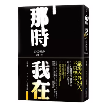 2014年3月18日夜,一群學生進佔立法院,掀開了島嶼民主史上的新頁,外界通稱為「太陽花學運」,事實上,隨著議題的深化、延伸,以及公民意識崛起和反省,參與人數、族群、業種、年齡層不斷擴大,最後撐起這場運動的已經不只是學生,各種NGO團體、上班族、社會人士、大眾資源,紛紛加入,每個人自動自發,盡其所能,進退有據,不計功勞……從各項分布的狀況來看,具有相當程度的廣泛性,一場全民的公民運動,絕不為過。那時,每個人的聲音都該被聽到,無論背景、立場、參與理由,他們的故事在這裡——我在現場的故事,都該被看見。讓我們收集每一個碎片,還原那時的感動和激動,找出期待的未來,莫忘初衷。公民路上,當每個人由於自覺走向群體,為所有人的存在而存在,太陽花於是開花遍地;而路上因為有你、有他、有我,才不孤單,公民要團結,團結才有力!