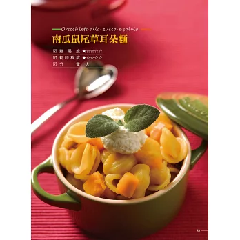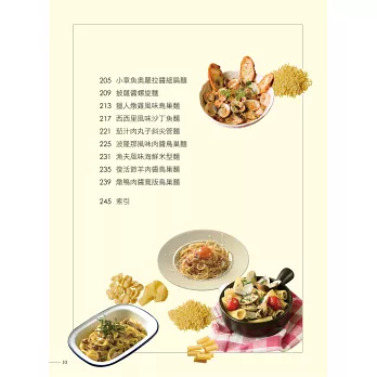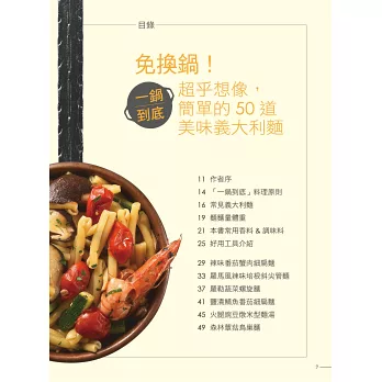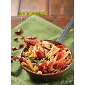 本書內含高達50道義大利麵食譜,使用多達12種麵形,作者配合麵形設計多種食譜,義大利麵也可以好豐富!