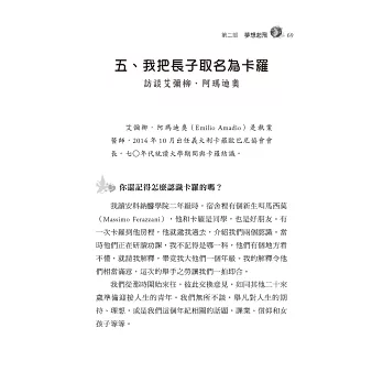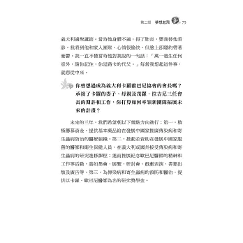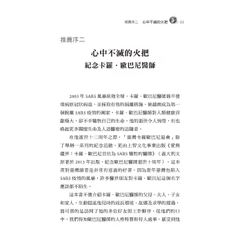 本書收錄歐巴尼醫師珍貴的生活照片及四十多篇訪談,透過家人、朋友、醫界同事、無國界醫生及世界衛生組織同仁、記者、政府官員和外交官等人的回憶,深入了解卡羅.歐巴尼懷抱理想、熱愛生命與關愛貧病者的動人事蹟。希望作為年輕人學習的榜樣,激發讀者對生命的熱情和服務人群的使命感,延續歐巴尼醫師的奉獻精神,一起實現他未完成的夢想與志業。