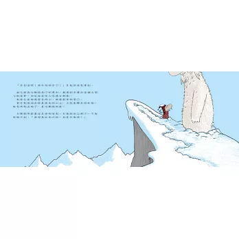 1.畫風評介:本書一開始的藍白色調背景,營造出了冰天雪地的氛圍,配上史教授東翻西找的模樣,讓讀者不禁好奇他到底在找什麼呢?接著謎底揭曉,是一隻灰白色,高得看不見全貌的大腳怪!而大腳怪身上的繪筆紋路,光看就令人覺得毛茸茸的,臉上的表情也因為露出了幾顆牙齒,呈現傻里傻氣的感覺。隨著劇情發展,色彩也繽紛了起來。書的最終頁,則呼應著最初的冰山,仔細一看還可以看見大腳怪夫妻檔手牽著手,走得遠遠地呢!