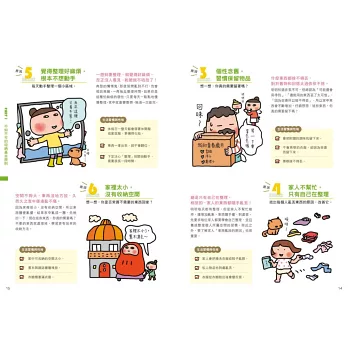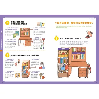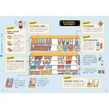 2、圖解收納前的分類步驟,搭配清楚插圖,按照一次一區的收納原則,快速上手又有成就感。