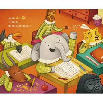 想想看,如果大象上學去,她將會學到什麼?學ABC嗎?才不呢!