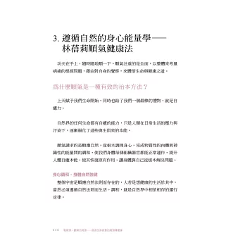 ★教你從調整全身新能量、放鬆肩頸肌肉和壓力,喚醒身體的自癒力,對「因」治療以避免生病!