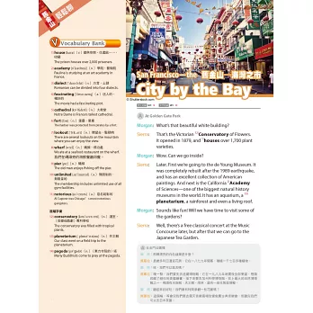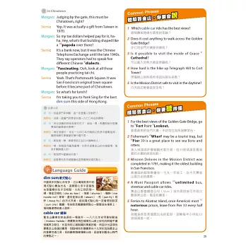 許多人學英語的目的,無非是希望出國旅行時能放膽開口、聽說無礙。本書中的旅遊會話及好用句包含了各種情境,讓你敢開口問路、購物、買票、搭車、點餐。還有當地人可能會說的介紹,讓你不會聽得霧煞煞!