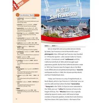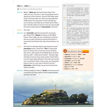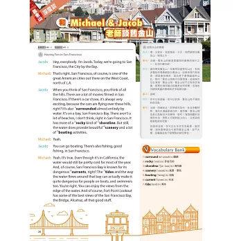 隨著英國電影、影集紅遍全球,英式英語也愈來愈普遍,但英國腔對許多學習者來說較為陌生。本書特別請來英籍老師Michael與美籍老師Jacob,對談城市的景點、軼聞、趣事、美食等等,對話風趣、真實,讓讀者自然習慣兩種口音。兩段對話各約2分鐘、250字,適合訓練英聽理解以及口語能力,讓你與老外聊天更有料!