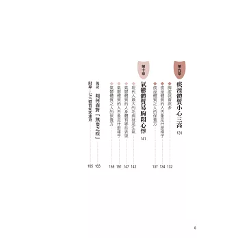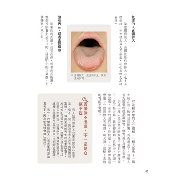 有圖有真相!作者在幾千張舌象照片中精選出最具代表性的,並加以拉線解說,讓你一目了然、不必讀字也能看懂!