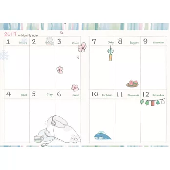 ♦內頁設計:年曆、月曆、週間曆與大量方格筆記頁,具實用價值。