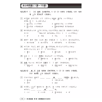 除了各篇章的習題之外,書末亦有1回與正式考試形式相同的題目。幫助熟悉出題方向,提升自我戰鬥力。