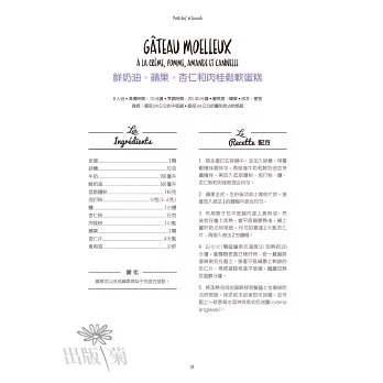 這本『最強平底鍋蛋糕Gâteau à la poêle』深獲讀者好評,也是至今最熱門的平底鍋蛋糕食譜!直徑20至24公分的平底鍋最適合,因為當蛋糕需要翻轉時,可輕易地利用餐盤將蛋糕反轉避免破損。書中的所有食譜均以不沾的平底鍋簡單即可完成。沒做過甜點的朋友也可以輕鬆嘗試。本書分為以下單元,依序為: