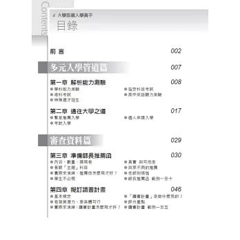 這本書就是要幫助所有的學生、家長與教師,解除升學的疑慮,了解大學甄選入學最有效的準備方法。