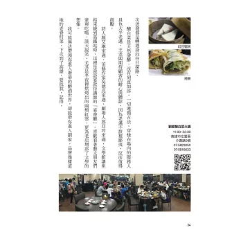 諸如此類的高雄在地文人私藏美食與美景,喜菡今天全拿出來跟你分享。本書也有她親自拍攝的所有現場,讓人很快可以身歷其境.但這樣神遊高雄,不如就買一本這本詩人親自導覽高雄書,馬上飛奔過去。