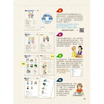 2. 隨身手冊:為了幫助讀者隨時都能學習,本書特別附贈「隨身手冊」。內含容易混淆的短句和會話,走到哪、學到哪!