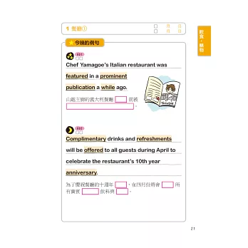 ◆ 由例句帶出單字,讓你學會單字的實際運用,單字不死背,才能真正活用!