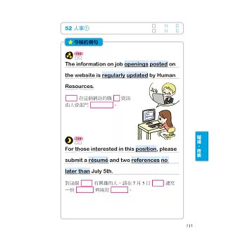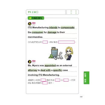 ◆ 英中對照例句、單字 MP3,一邊看一邊聽、加深印象,就算眼睛累了不想再看字,也能練聽力,多管齊下,讓你的多益實力突飛猛進!