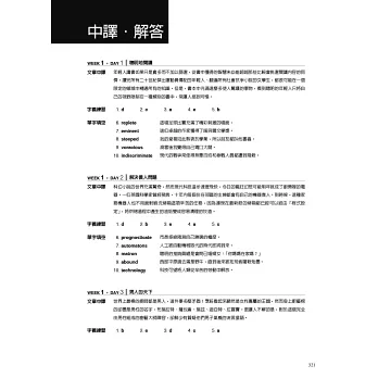 繁體中文版對內容架構做了微調,讓練習順序更符合台灣讀者的學習習慣,並在不影響原本學習理念的基礎上,提供單字的中文字義。中文版另一大特點是,全書的練習、例句和文章皆附有精準流暢的中譯,並貼心編排在書末,幫助讀者最後確認是否有理解上的偏誤。此外,中文版新增了MP3,讓讀者可以加深對字彙的記憶,並能正確發音、訓練聽力,更全面地學習。