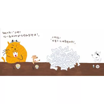 小狗搖著尾巴說:「我帶了一大堆骨頭回來!」