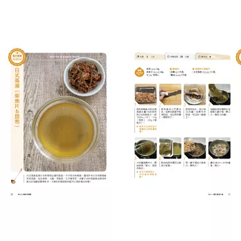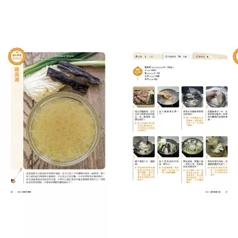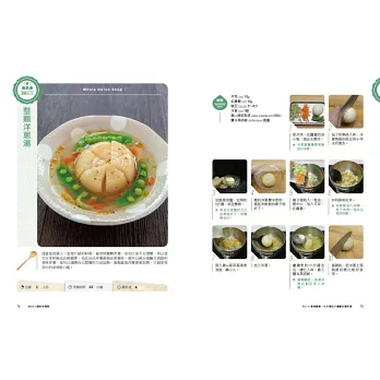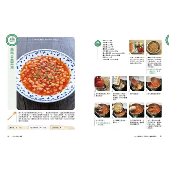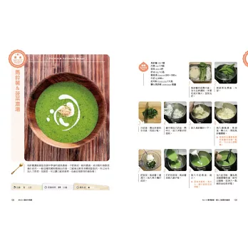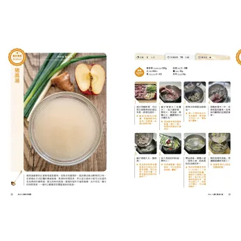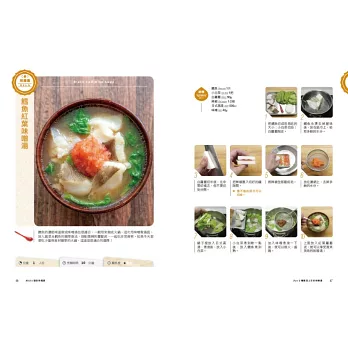 ‧書中每道湯品除了有詳細的圖說與文字做法外,還有標示烹調時間、難易度、份量與作者的貼心小叮嚀喔!