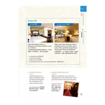 章節中穿插補充各類飯店相關知識,幫助熟悉更多領域用語。