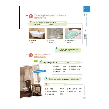 每章節在會話範例後緊接數組會話練習,學生可運用該課資訊練習對話。