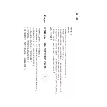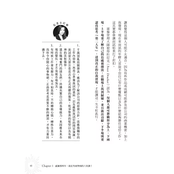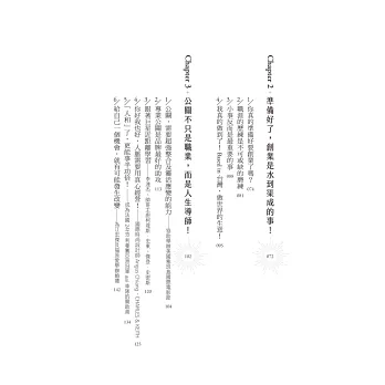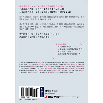 現在,她將多年來珍貴的職場與創業經驗淬鍊出這本書,期望能在所有職場工作者面對職場困擾、轉職迷茫、前路未知的徬徨時刻,給予適時的指引。