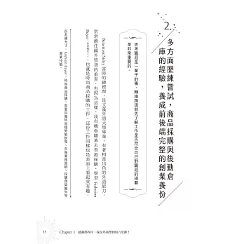 本書透過自我剖析的方式,瞭解個性、學習態度與投入職場的專業養成;同時藉由許多深入淺出之實際案例連結與分享,述說創業思維、面對各種不同客戶問題處理機制。成功絕非偶然,在面對每一個工作過程中多元積累,將造就一切美麗的果實。