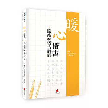 2016出版《暖心楷書習字帖》的Pacino Chen (陳宣宏),3年之後再推出以古詩詞為習字練習的《暖心楷書‧開始練習古詩詞》,讓讀者稱嘆的最美麗楷書,又躍上眼前。
